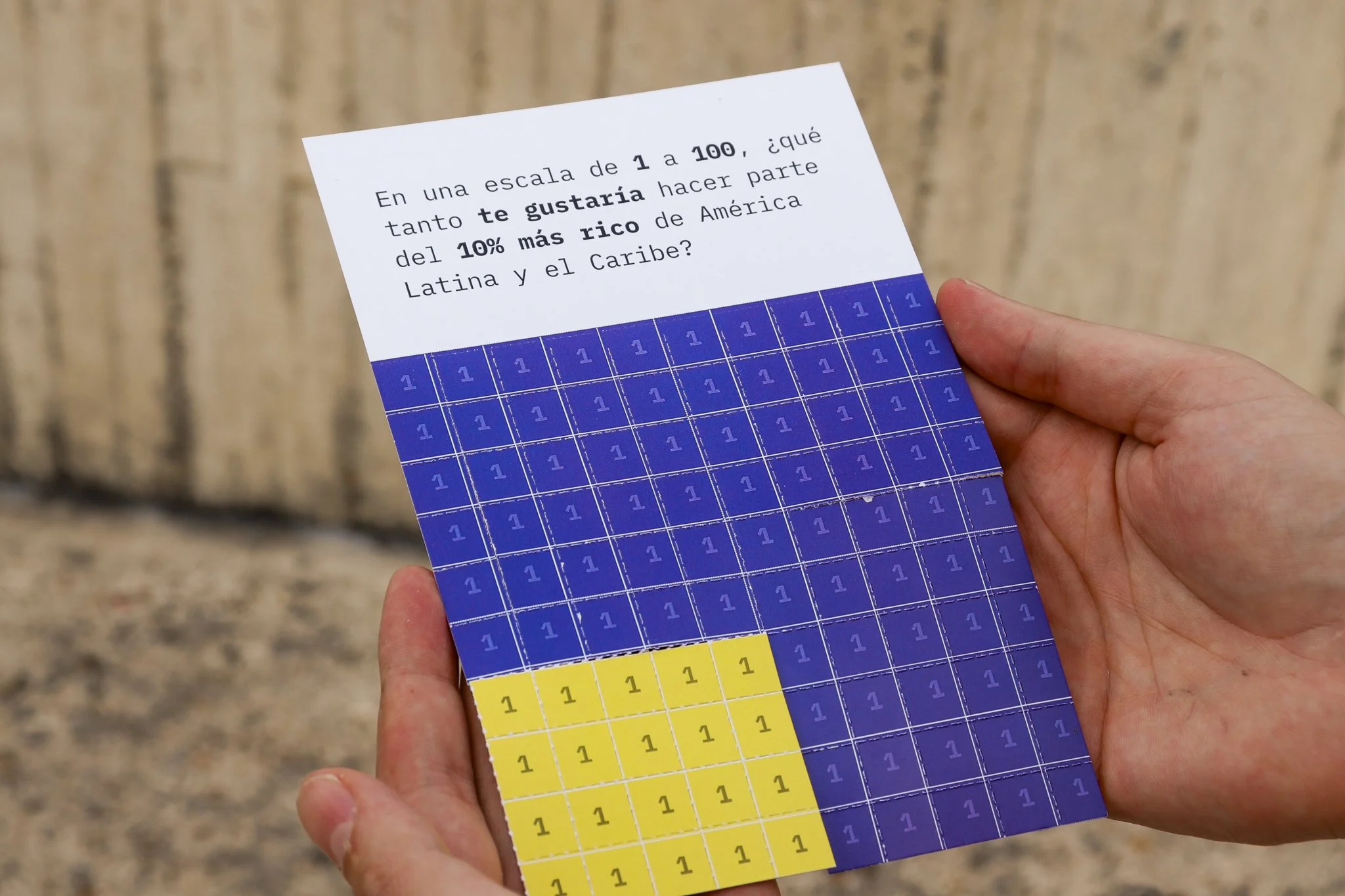 Con este dispositivo llevamos preguntas sobre desigualdad al espacio público para explorar no solo qué saben las personas sobre la concentración de la riqueza, sino cómo se posicionan frente a ella desde el deseo, la percepción y la imaginación.