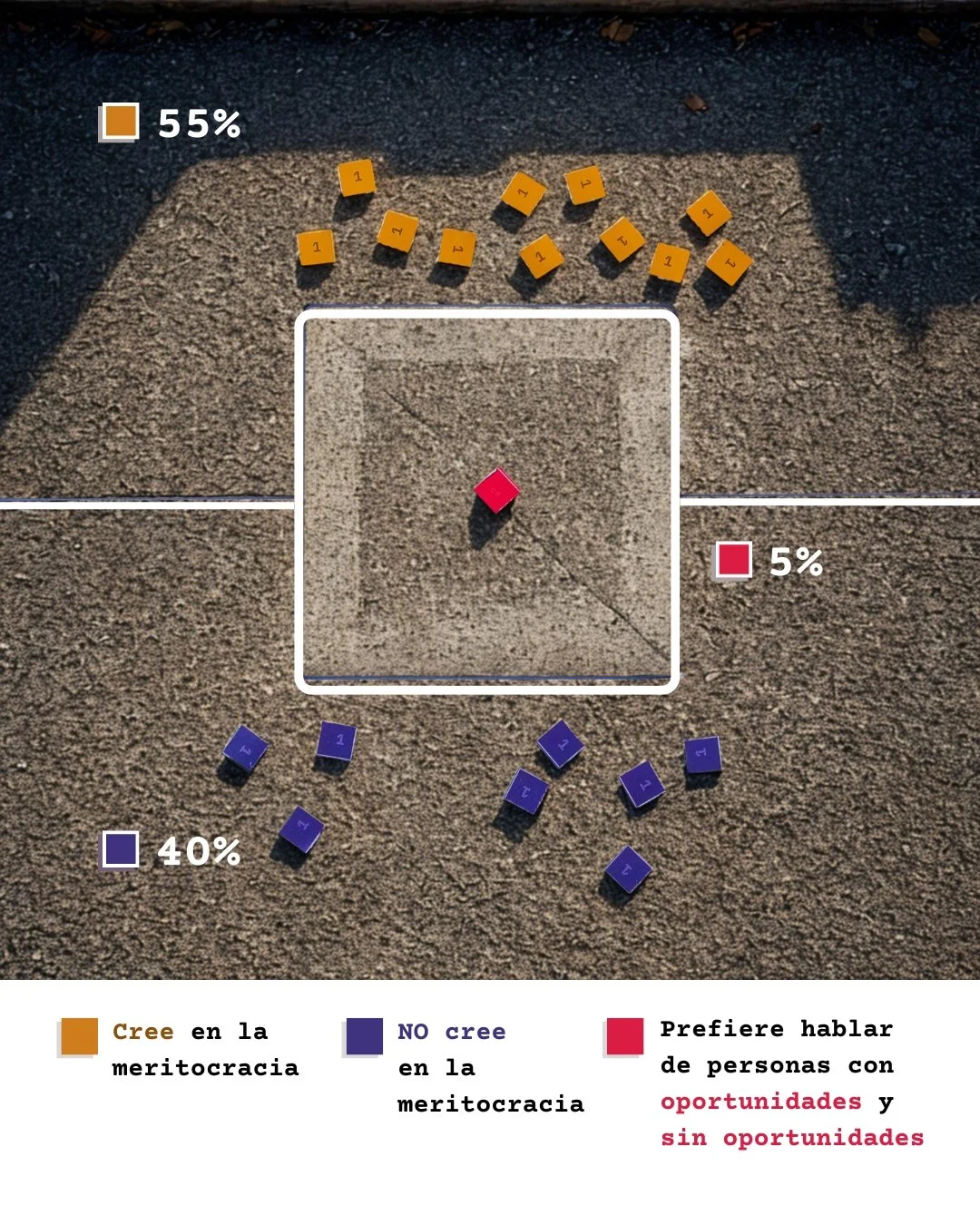 ➡️ A un lado se ubican quienes creen en la meritocracia.