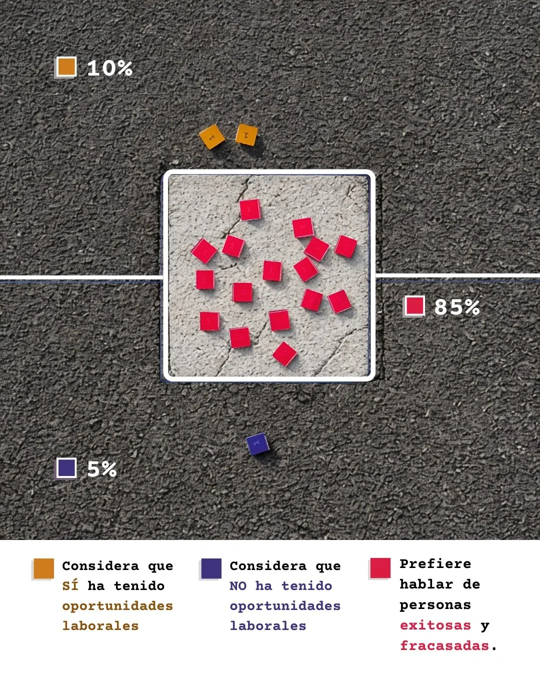 ➡️ Oportunidades laborales / ⬅️ Falta de ellas; ➡️ Éxito / ⬅️ Fracaso; ➡️ Precariedad / ⬅️ Privilegio.