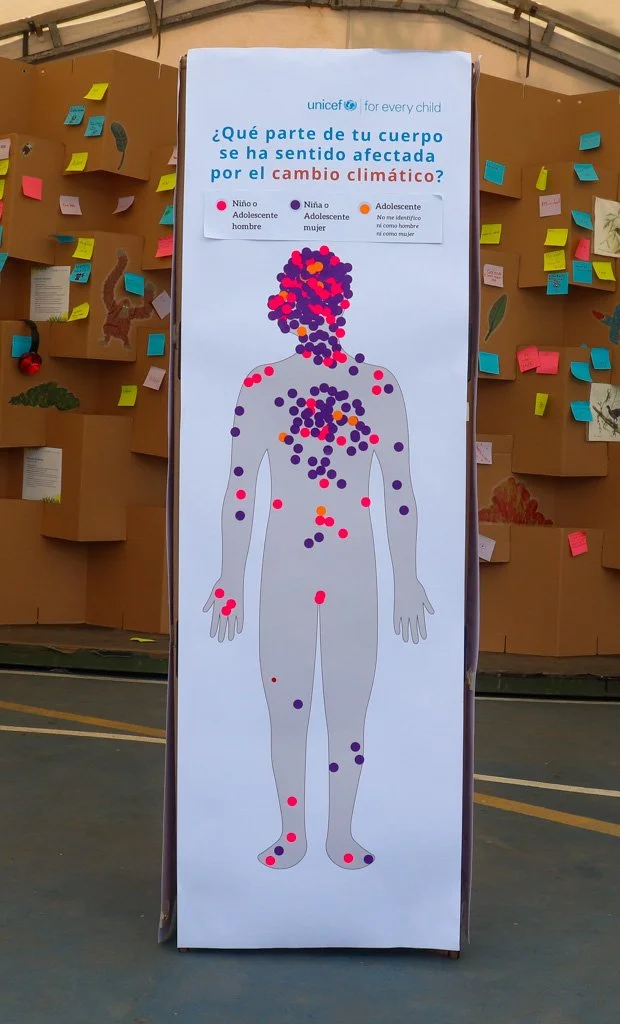 En un primer momento, muchas respuestas repetían lo que escuchamos todo el tiempo: reciclar, sembrar árboles, no botar basura. Pero bastó con cambiar la forma de preguntar para que aparecieran otras voces, más propias, más situadas. Voces que hablan desde cuerpos atravesados por experiencias concretas: el calor que provoca dolor de cabeza, la falta de agua que impide a las niñas ir al colegio durante su periodo menstrual por no tener condiciones dignas, la desaparición paulatina del canto de las aves, la vulnerabilidad de los barrios empobrecidos donde los efectos del cambio climático se sienten con mayor crudeza. Y con ello, una comprensión crítica: que la justicia climática es inseparable de la justicia social.