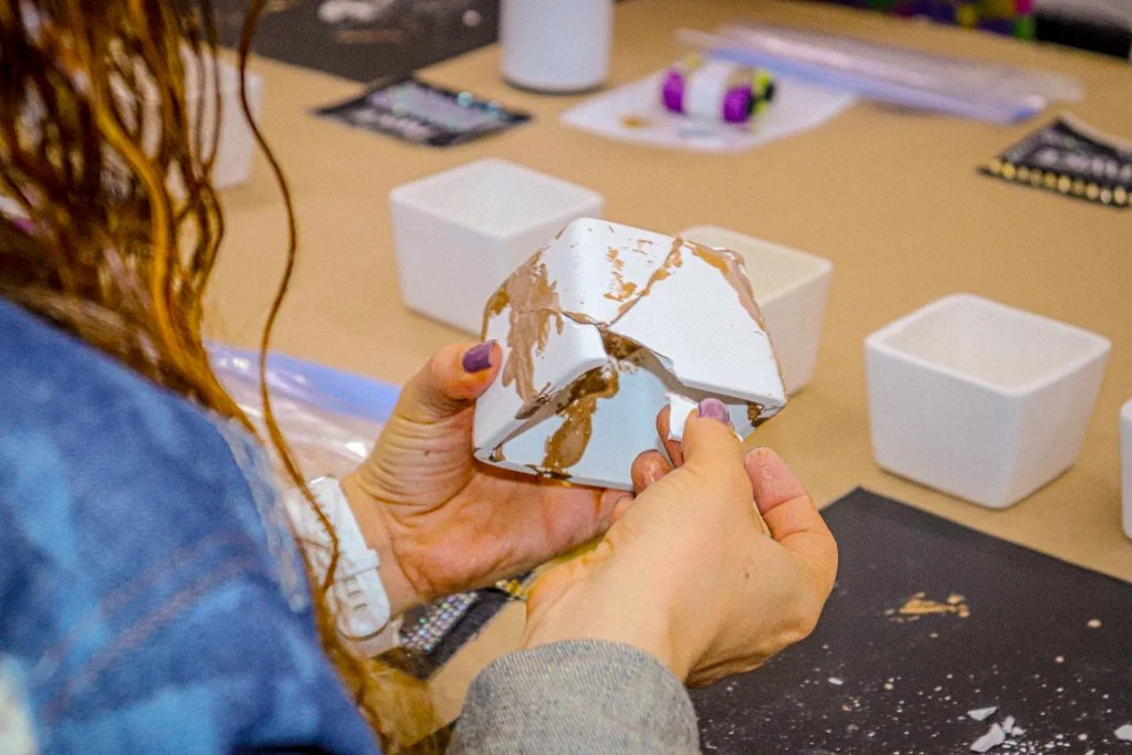 También creamos un dispositivo performativo inspirado en la filosofía japonesa del Kintsugi, en el que invitamos a romper deliberadamente una pieza de cerámica para luego reflexionar: